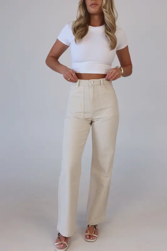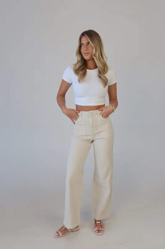 The ABRAND 94 High & Wide in Milk offers a stylish and comfortable fit with a high waist, wide leg, and full length. This versatile beige denim pairs effortlessly with any outfit or accessory. Runs true to size and has a comfortable fit with zipper closure and amazing material. The High & Wide is perfect for dressing up or down for anything your day has in store! A timeless staple for your wardrobe!
