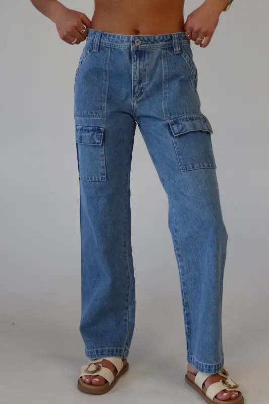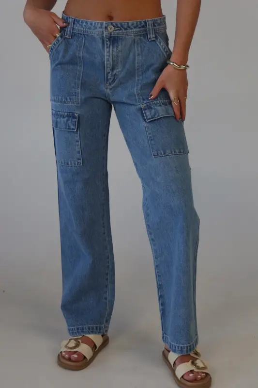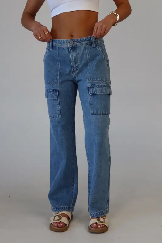 The ABRAND 99 Baggy Cargo Tianna in Mid Vintage Blue is the ultimate blend of style and function. Featuring a relaxed fit, low rise, and full-length straight leg, these vintage-inspired cargo jeans offer comfort and trend appeal. Complete with functional pockets and a secure zipper closure, they’re a must-have for adding a fun, stylish touch to your denim collection!