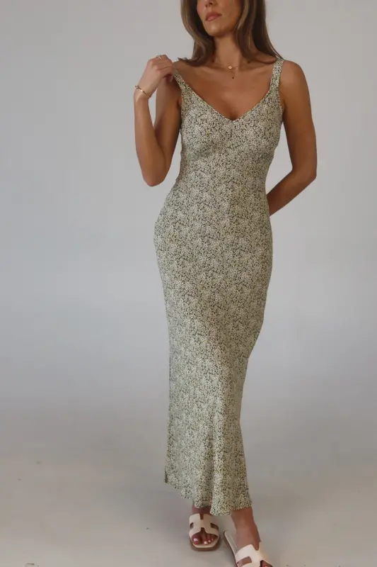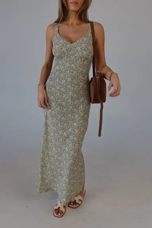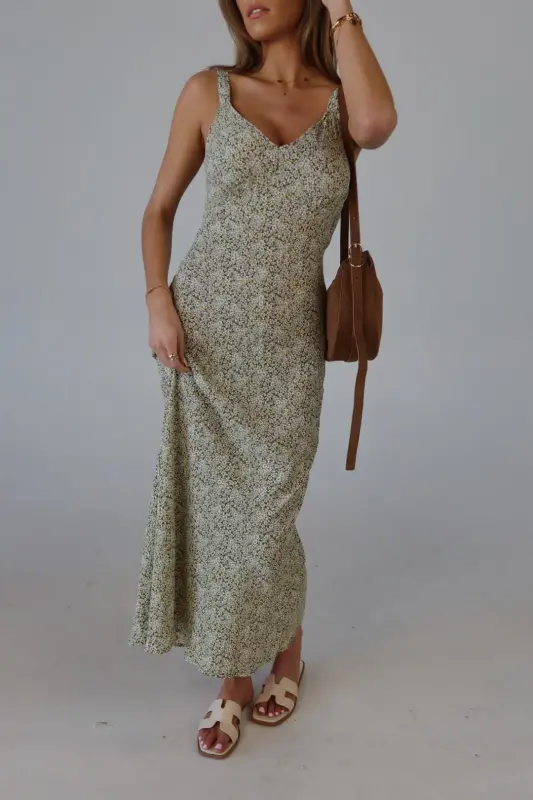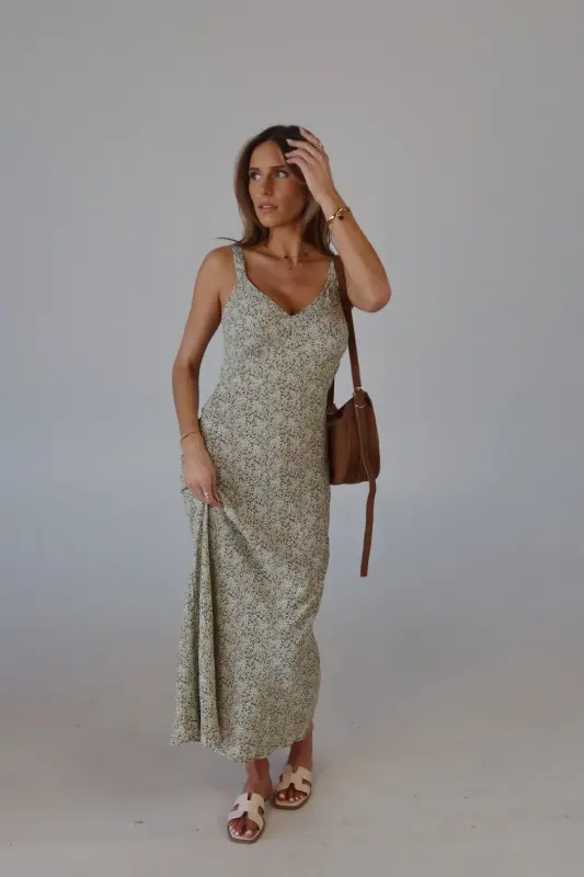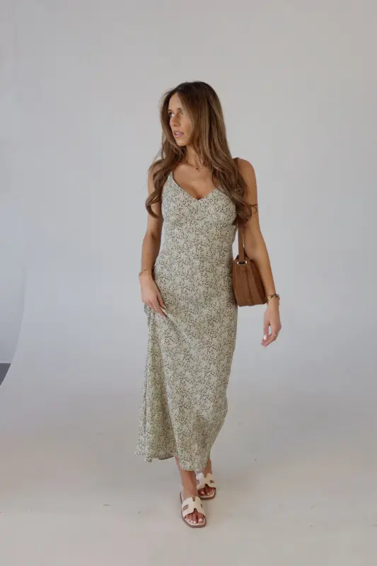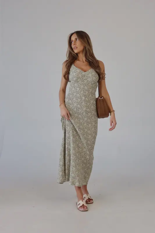 The Dahlia Floral Midi Dress is a dreamy slip dress crafted from a lightweight material, making it perfect for warm weather. Featuring a stunning floral pattern in olive, yellow, and white, this dress exudes a fresh, springtime vibe. The adjustable straps ensure a customizable fit, while the relaxed, effortless silhouette offers comfort and style. Whether you're attending a wedding or heading on vacation, the Dahlia Floral Midi Dress is the perfect choice for effortless elegance and seasonal charm.