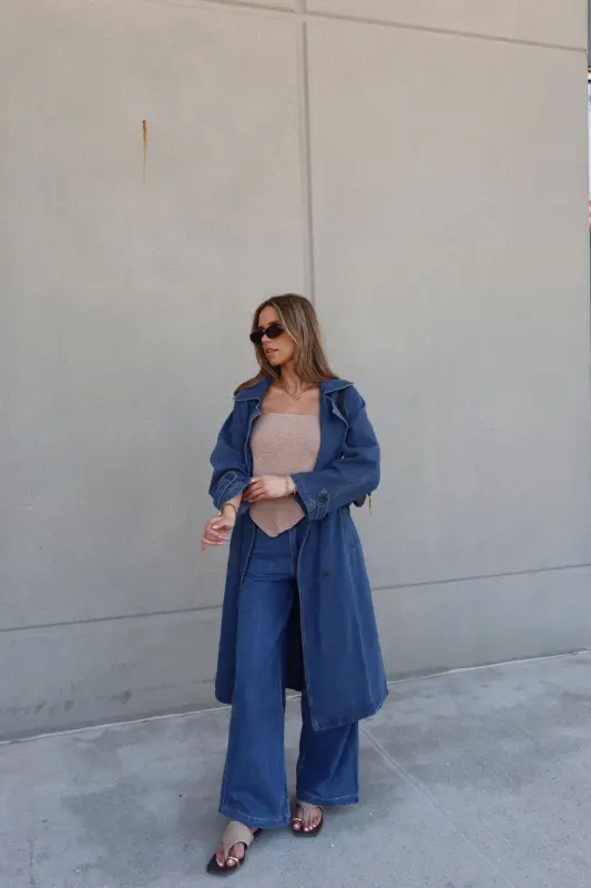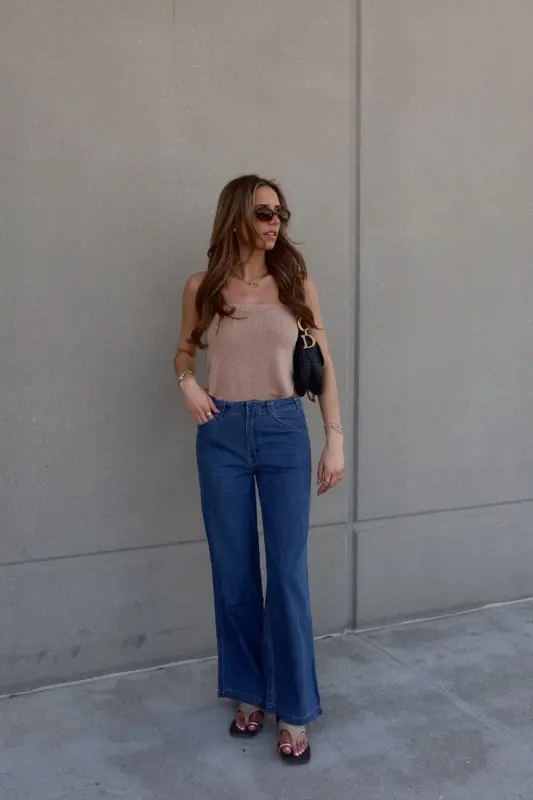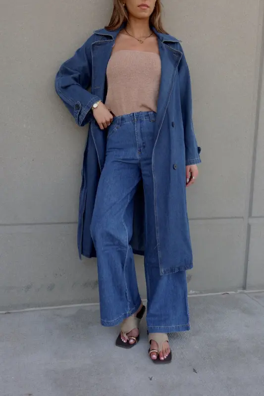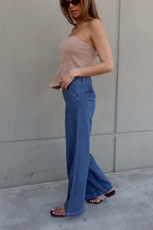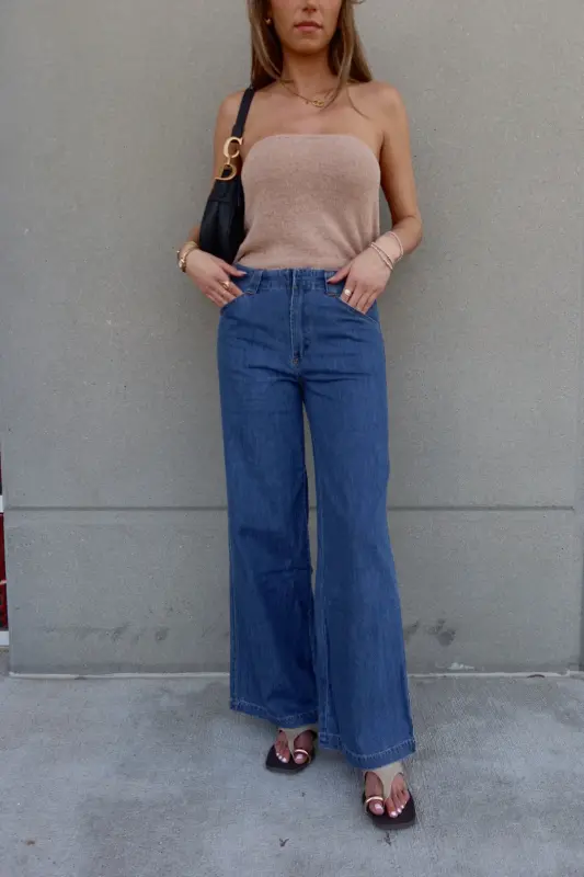 Step out in our Keaton Wide Leg Denim Pants – a vintage-inspired wardrobe staple. These high-waisted denim pants feature a dark wash, with camel-colored stitching details that add a timeless touch. Designed with a wide leg style, belt loops, and functional front and back pockets, they offer both style and practicality. The front zipper closure ensures a comfortable, effortless fit. Perfect for pairing with any top, the Keaton Wide Leg Denim Pants are a must-have for a chic, casual look any season.