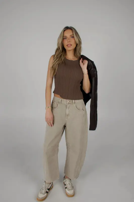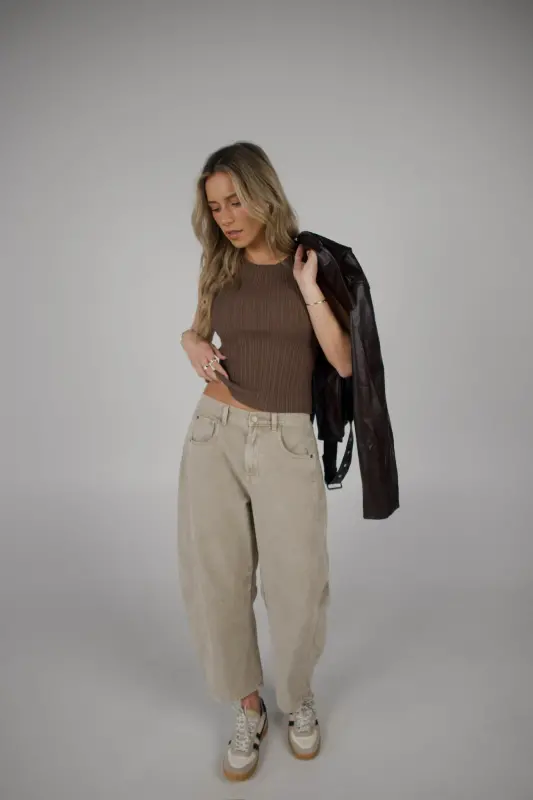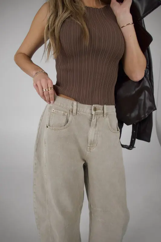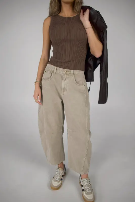 Willow Barrel Jeans in Stone – Effortlessly cool and endlessly versatile. These mid-waisted barrel jeans feature a wide-leg, cropped silhouette in a gorgeous stone wash that makes styling effortless. Designed with a relaxed fit, classic 5-pocket styling, functional belt loops, and a front zipper with button closure, these cotton jeans balance comfort and structure perfectly. A must-have fall pant for any wardrobe—wear them casually with sneakers for a laid-back weekend look or dress them up with heels and a fitted top for a chic night-out vibe.