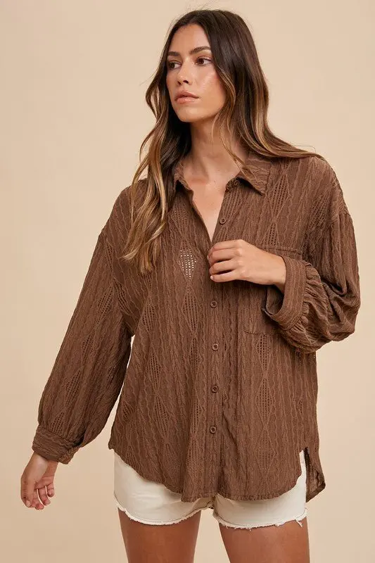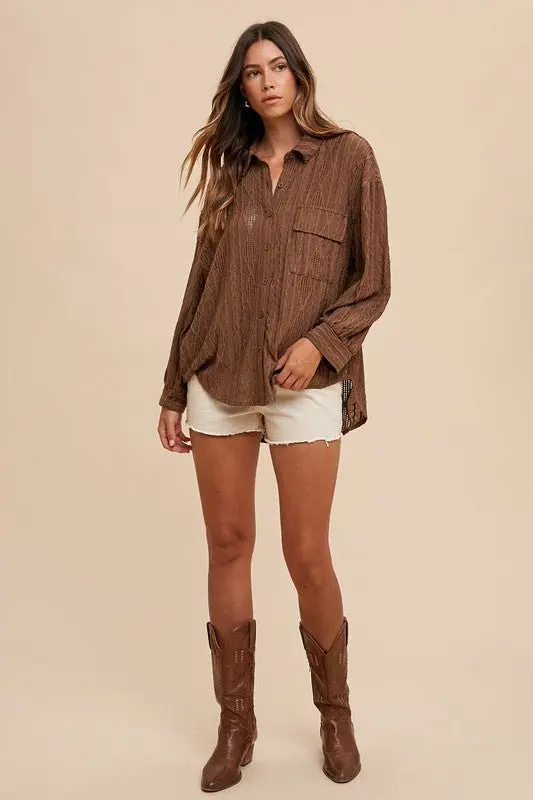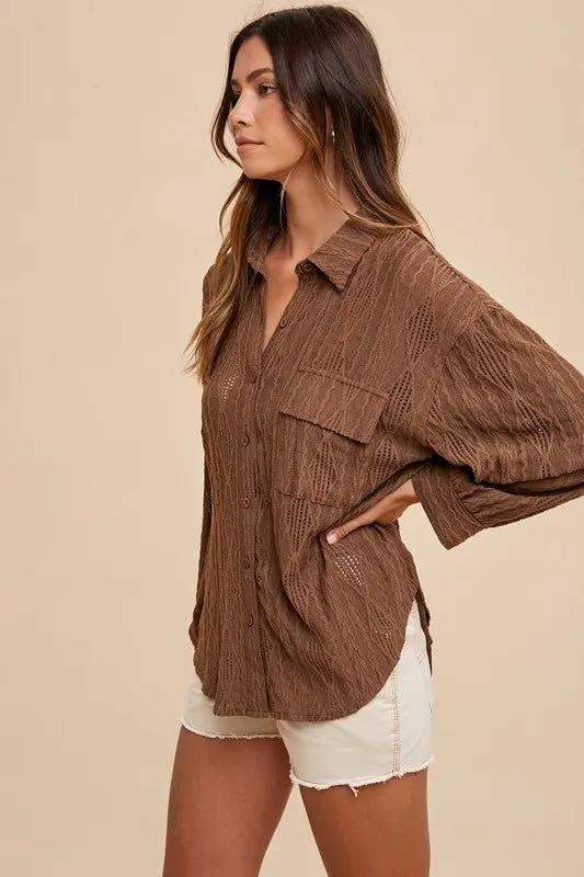 Stylishly versatile, with modern design and classic details, our Openwork Button Down Drop Shoulder Shirt has trendy openwork detailing and a timeless button-down closure. The drop shoulder silhouette ensures a relaxed, comfortable fit.