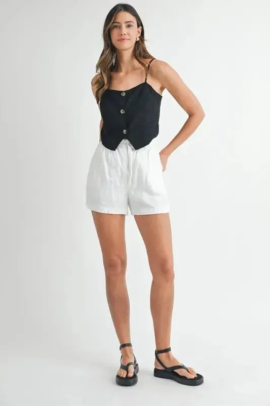 This top has a corset-inspired design for a flattering fit, with a crop length for a modern and edgy touch. It pairs well with high-waisted bottoms and adds a unique and bold statement to your wardrobe.